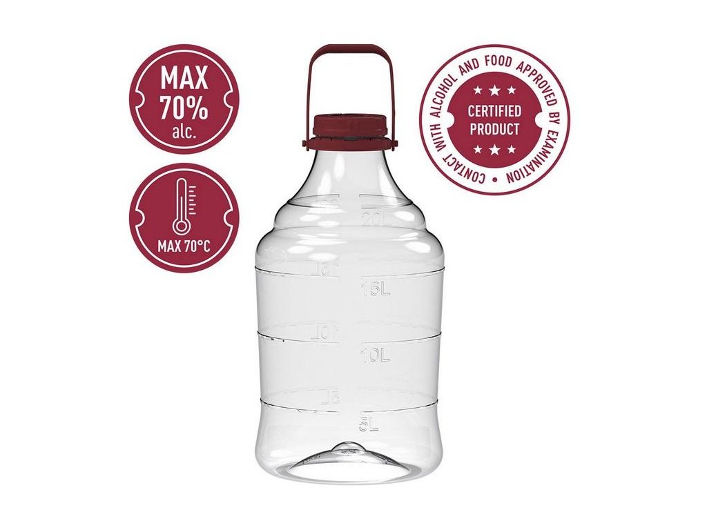 - demižon 20l vyrobený z nerozbitného plastu (PET-1)