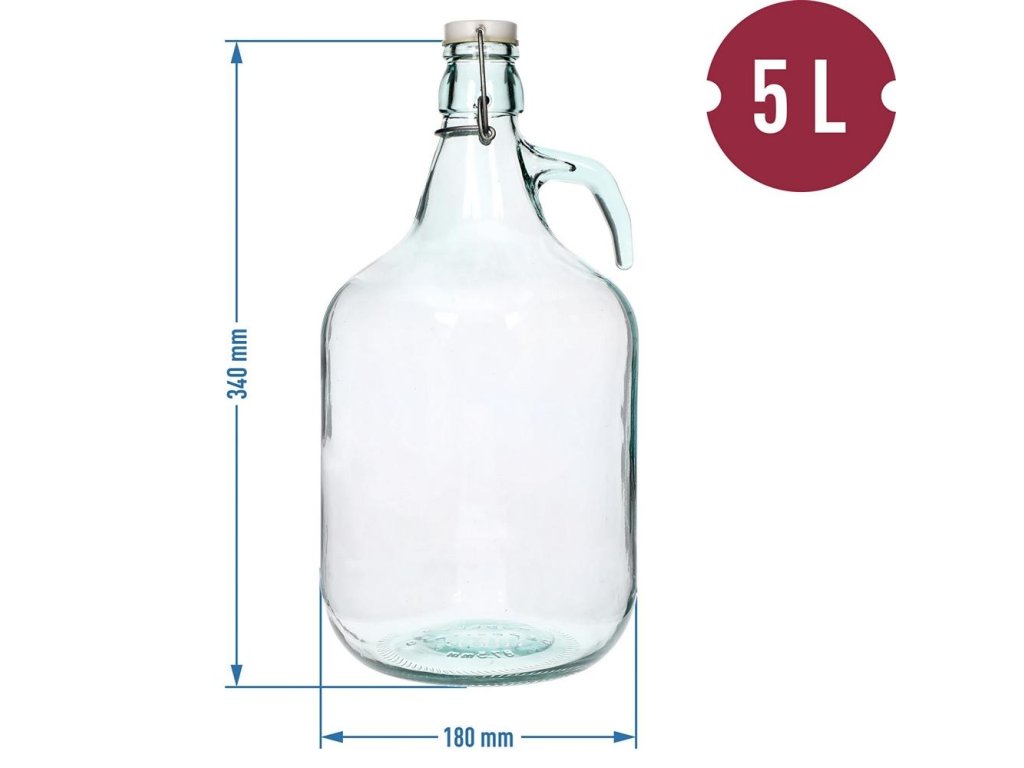 Demižon s uzávěrem a ochranným košíkem o objemu 5l je vyroben z vysoce kvalitního skla.