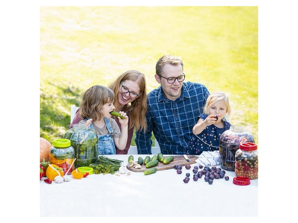 Univerzální nerozbitný demižon s barevným šroubovacím uzávěrem z plastu (PET) je dokonalým doplňkem a náhradou za typické skleněné nádoby. Výroba domácích konzerv a nápojů bude mimořádně snadná.