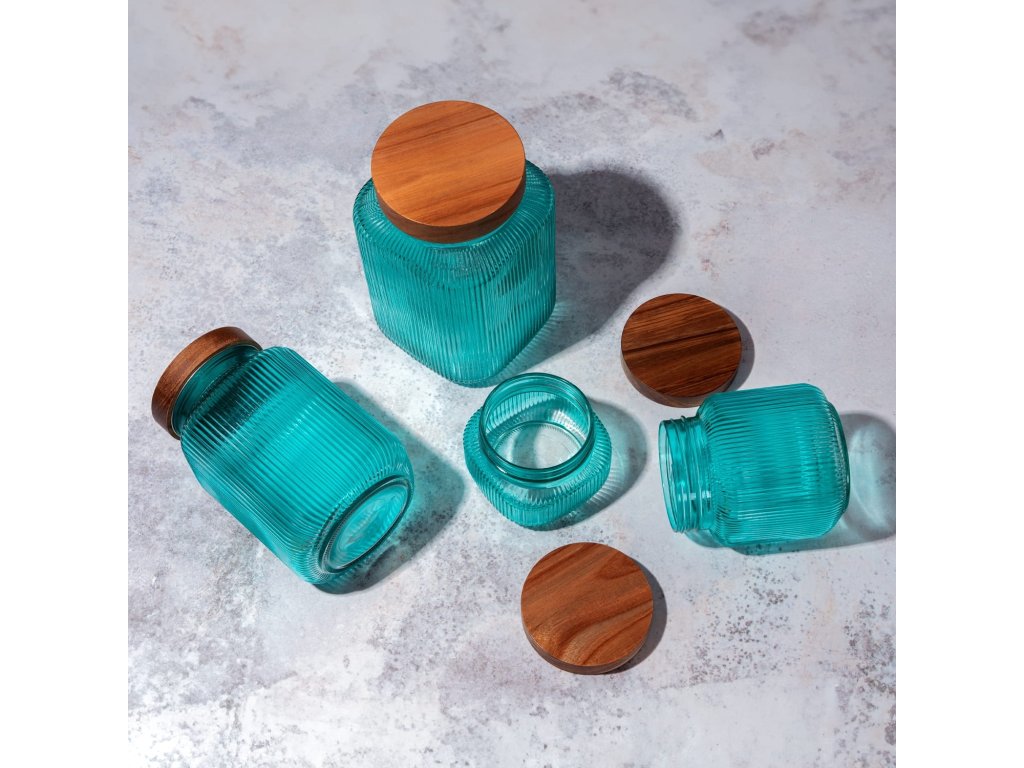 DuraHome Dóza s dřevěným šroubovacím uzávěrem, 2l, tyrkys