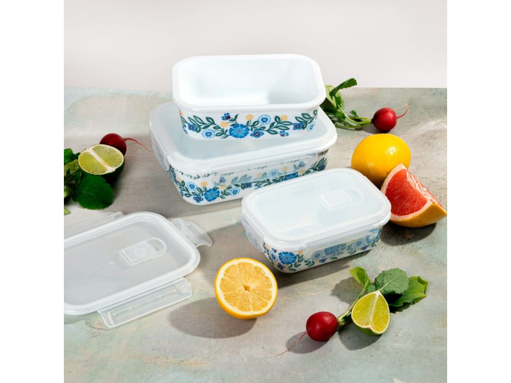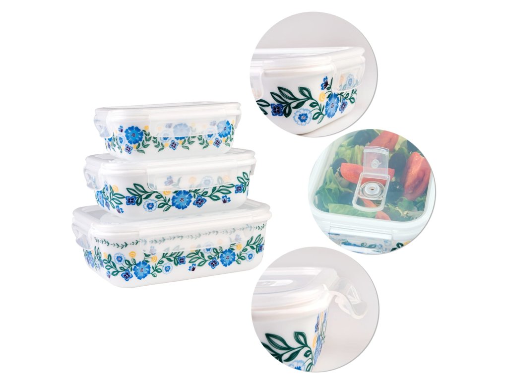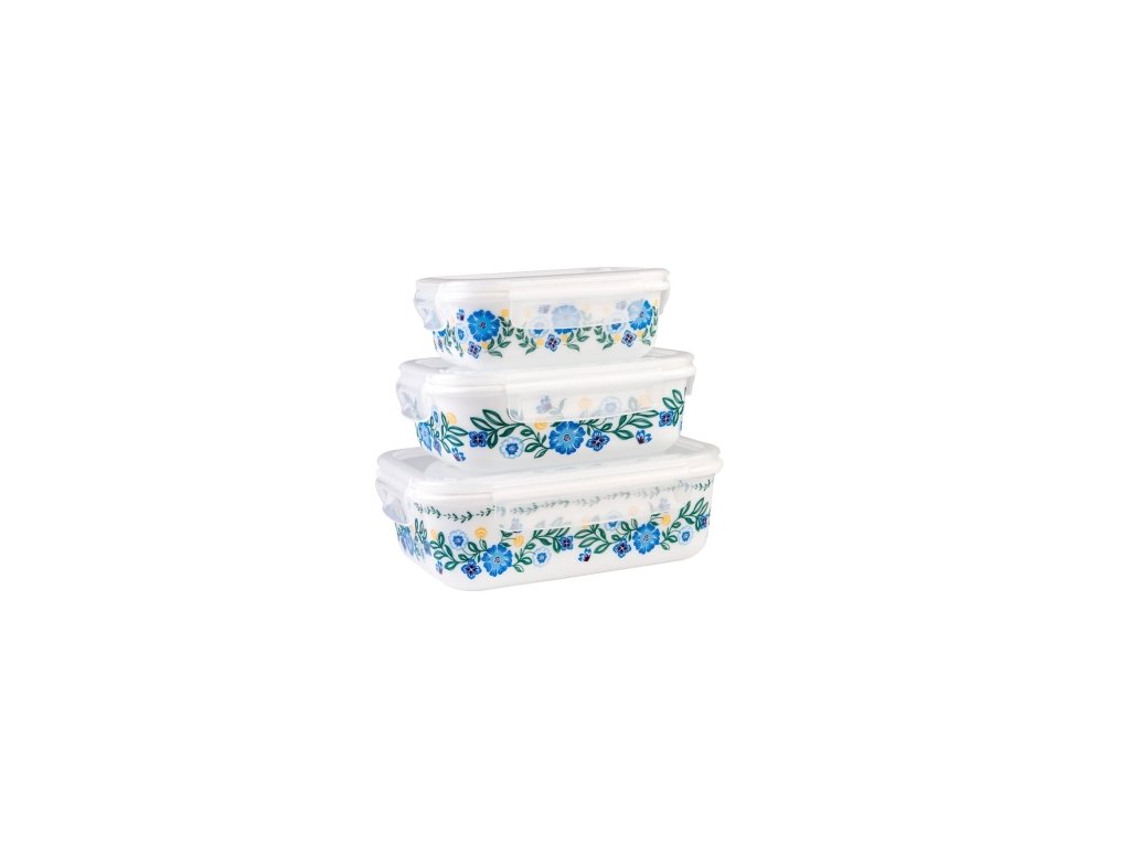 DuraHome Dóza skleněná hermetická, hranatá, malovaná sada 3ks