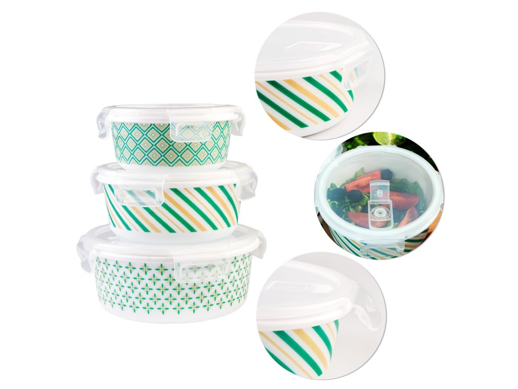 DuraHome Dóza skleněná hermetická, kulatá, zelená, sada 3 ks