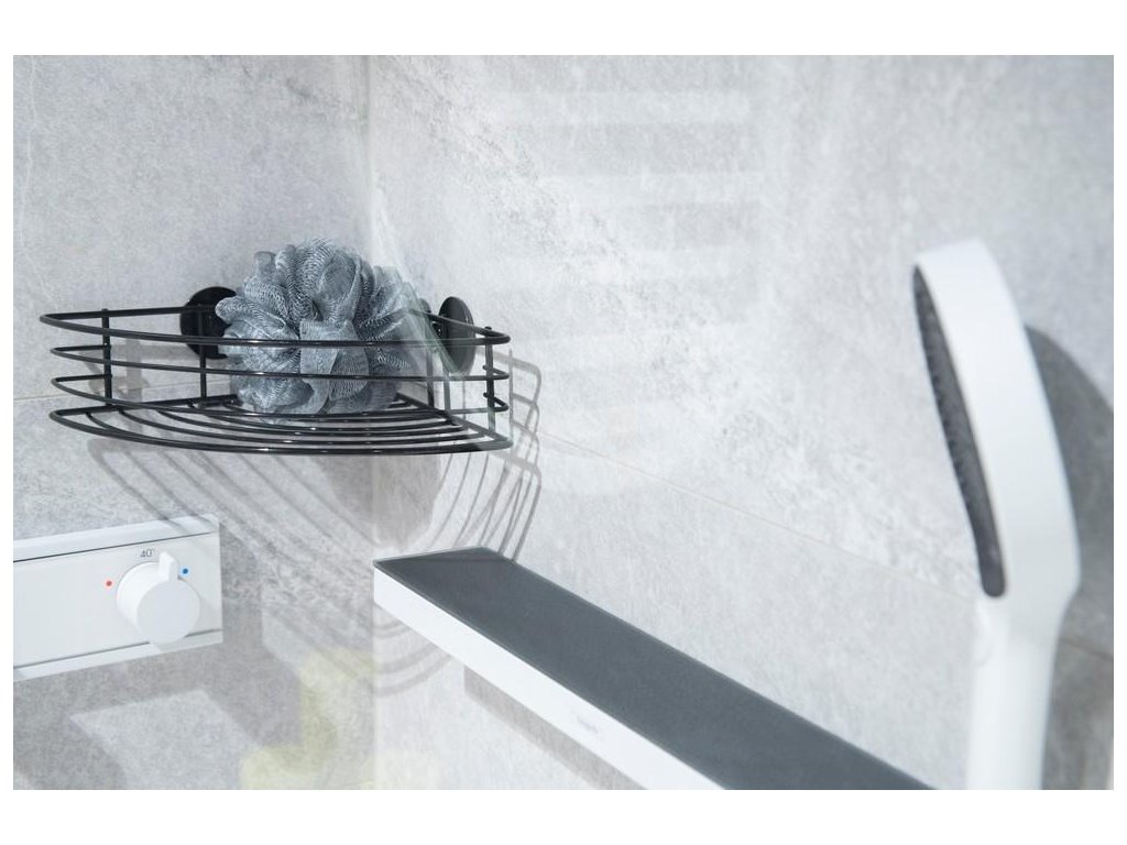 DuraHome Drátěná polička rohová, samolepicí 3M, černá