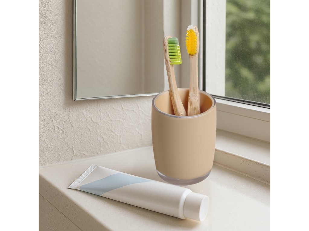 Vyroben je z kvalitního AS (akrylu), který je lehký, pevný a odolný vůči rozbití. Snadno se čistí, je hygienický a vhodný pro každodenní použití. S kapacitou 220 ml poskytuje ideální velikost na ukládání zubních kartáčků, pasty, holicích pomůcek nebo může sloužit jako klasický ústní kelímek.