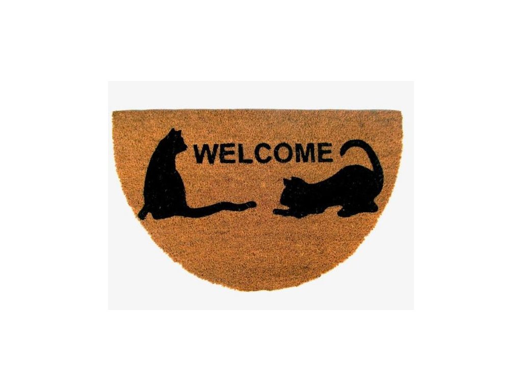 Praktická rohožka "Welcome Cats" s rozměry 45×75 cm. Gumová spodní část rohožky zajišťuje její stabilitu a díky přírodnímu materiálu na horní části rohožky, vyrobenému z kokosu, snadno odstraníte nečistoty z obuvi.
