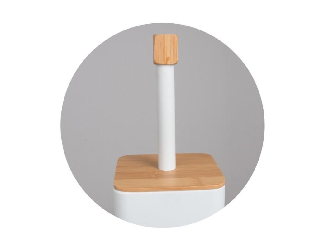 v bílé barvě v matném provedení s bambusovými prvky, bílá barva štětin na WC štětce,