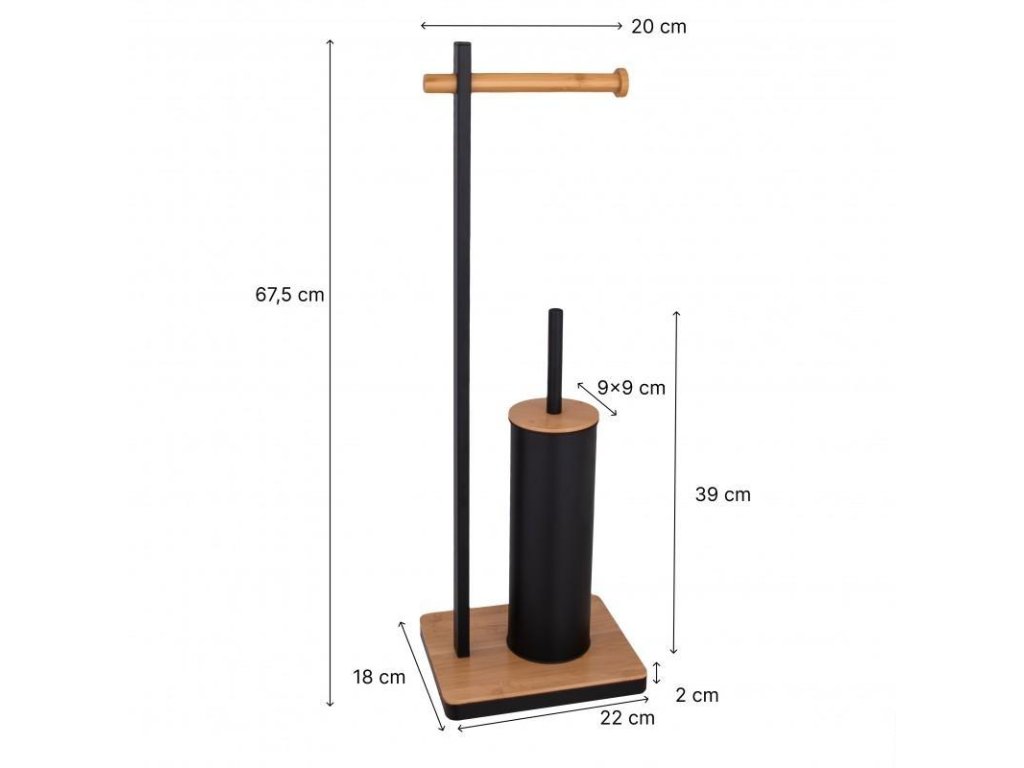 rozměr: celková výška: 67,5 cm, rozměr základny: 18 x 22 cm, výška základny: 2 cm, výška stojanu WC štětky: 39 cm.
