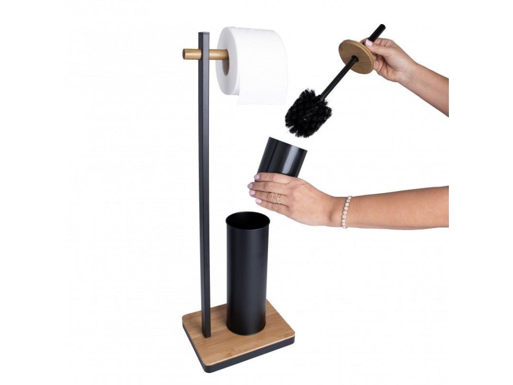 v černé barvě v matném provedení s prvky bambusu, černá barva štětin na WC štětce,