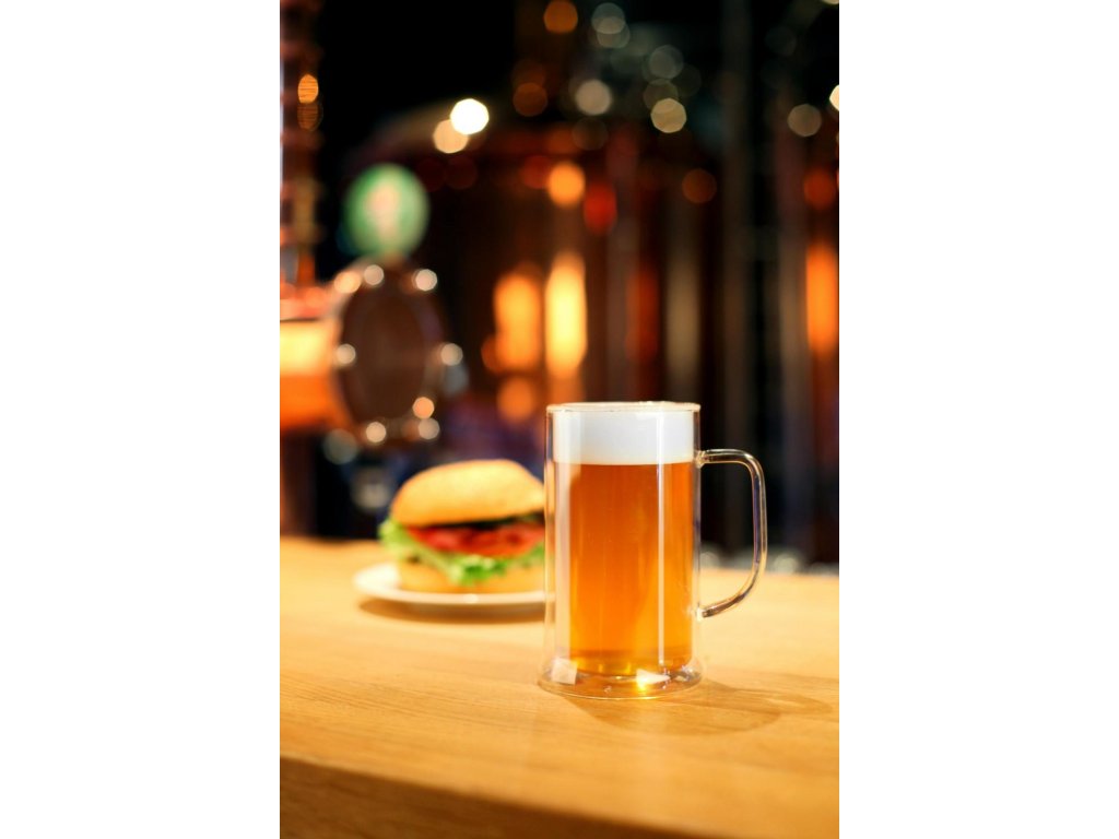 Pivní půllitr s dvojitou stěnou ze série AMO od značky Vialli Design, vyroben z kvalitního borosilikátového skla.
