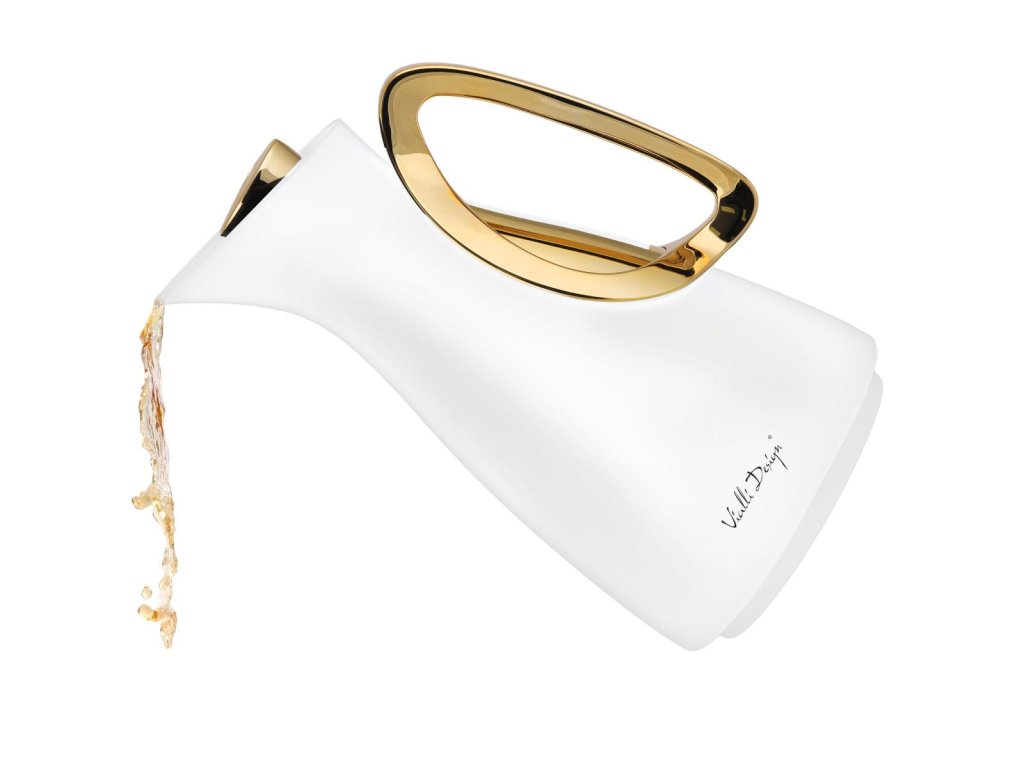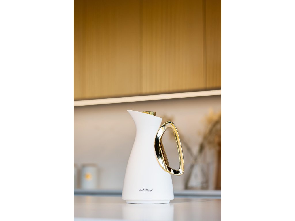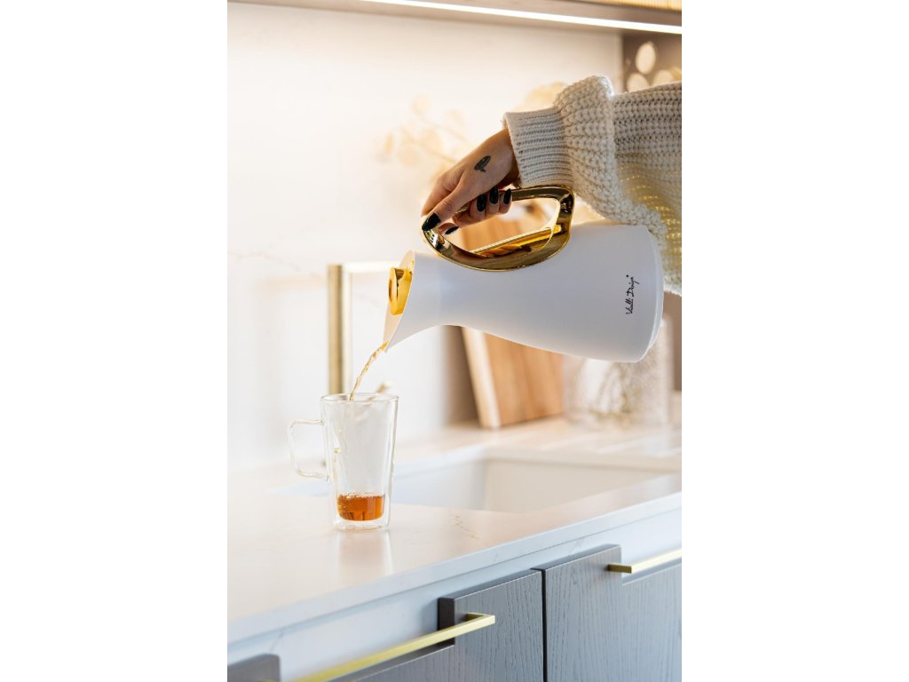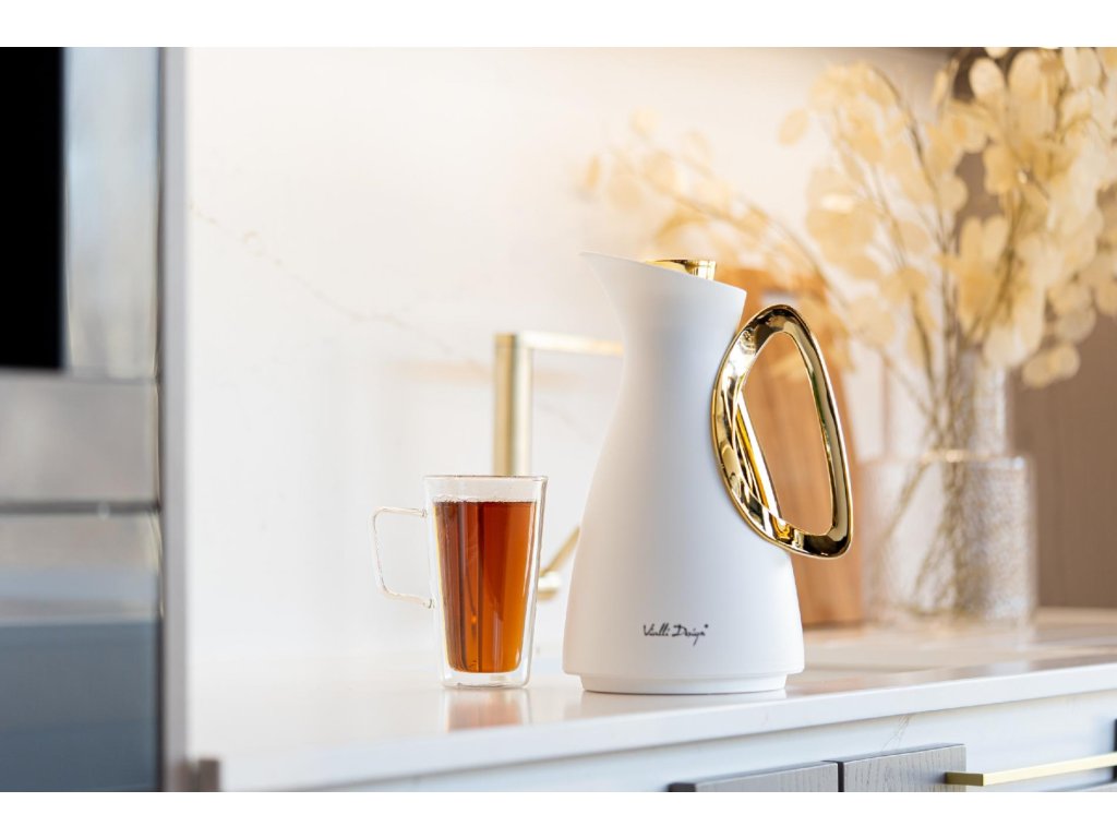 Vialli Design Termoska na nápoje se skleněnou vložkou, 1l bílo-zlatá, ALESSIA 1043